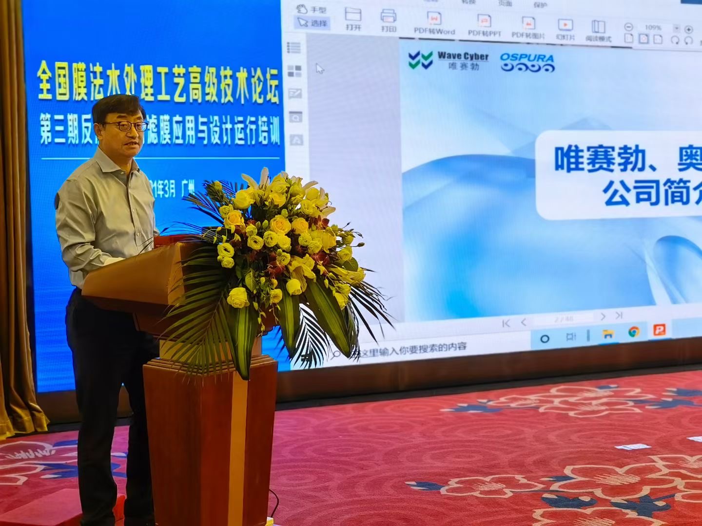 3.29日,唯赛勃子公司奥斯博与中国膜工业协会一起主办为期4天的“全国膜法水处理工艺高级技术论坛”在广州顺利召开。